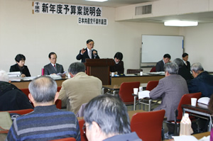 党市議団は2月17日、千葉市の新年度予算案についての説明会を開催しました。福永幹事長が予算全体の特徴や問題点について説明したのをはじめ、各議員が市民要望に対する予算状況について報告しました。今年も参加者からの意見や質問が多く出され、大変貴重な意見交換の場となりました。